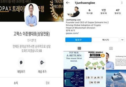 최근 고팍스는 인스타그램과 카카오에서 이준행 고팍스 대표를 사칭한 계정을 발견해 이를 신고했다. 이준행 고팍스 대표를 사칭한 인스타그램 계정의 경우 팔로워 수가 약 1만명에 달한 것으로 나타났다.