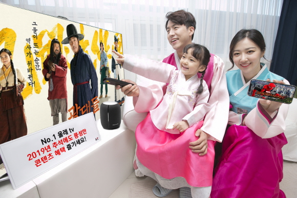 15일 유료방송업계에 따르면 KT는 오는 15일까지 올레 tv 추석특집관을 열고 온 가족이 부담 없는 가격으로 다양한 볼거리를 즐길 수 있도록 이벤트를 마련했다.