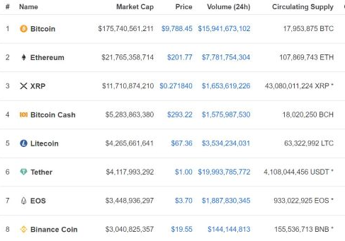 업계는 BTC가 백트 호재에도 불구하고 1만 달러 수준을 하회하고 있는 점에 주목하고 있다. 이날 코인마켓 캡에 따르면 오후 3시 20분을 기준으로 BTC 가격은 9789달러에 거래됐다.