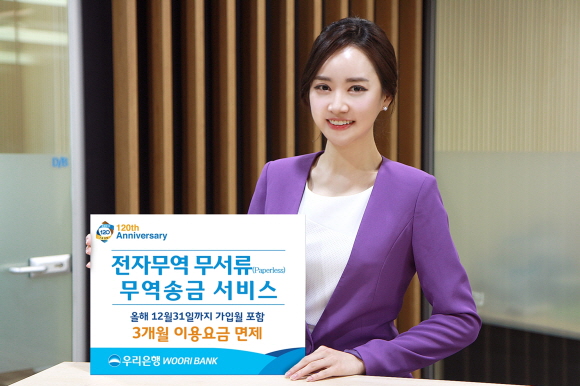연말까지 무서류 무역송금 서비스 가입 후 우리은행과 업무를 처리하는 고객은 가입월 포함 3개월간 서비스 이용시 전자문서 전송료를 면제받을 수 있으며 전자무역서비스 신규가입 후 무서류 무역송금 서비스를 이용하는 고객의 경우 월 기본료까지 면제받게 된다.