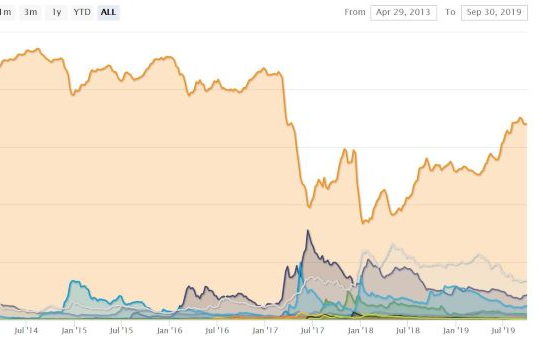 업계는 비트코인 도미넌스(시가총액 점유율) 상승이 알트코인의 전반적인 하락을 가져온 것으로 추측한다. 비트코인 도미넌스란 전체 암호화폐 시가 총액 중 비트코인이 차지하는 비율을 말한다. 암호화폐 시장 내 투자 흐름을 파악할 수 있는 척도로도 사용된다.