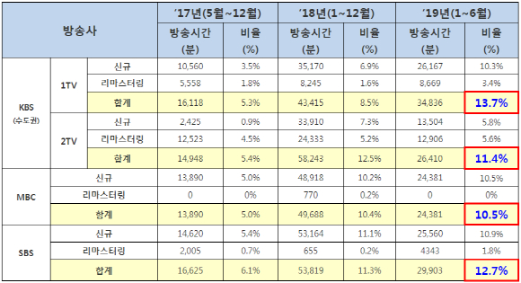 KBS, MBS, SBS도 올해 의무편성 비율을 달성하지 못하면 방통위로부터 시정명령을 부과 받을 것으로 예상된다. KBS1TV의 경우 2년 연속 허가조건 위반으로 방통위는 5000만원 이하의 과징금을 부과할 수 있다.