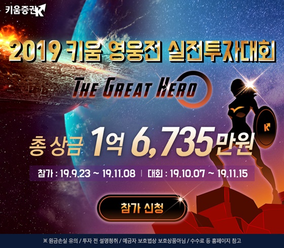 키움증권(대표이사 이현)은 14일 '2019 키움 영웅전 실전투자대회'를 시작했다고 밝혔다.