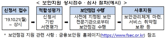 핀테크지원센터는 신청서 내용을 토대로 지원요건 충족 여부 등을 검토·심사한 후 전문기관이 보안점검을 수행한다.