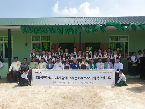 KB국민카드(사장 이동철)와 전국사무금융서비스노동조합 KB국민카드지부(지부장 이경진)가 이달 21일부터 6일간 미얀마 양곤 외곽 쉐비다 지역에서 학교 시설 보수와 교육 기자재 정비 등 현지 교육 환경 개선을 위한 '노사(勞社) 공동 해외 봉사 활동'을 실시했다고 28일 밝혔다.