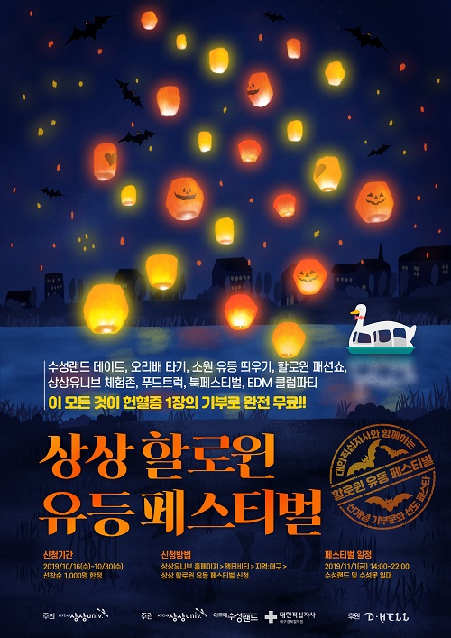 KT&G 상상유니브가 주최하고 대한적십자사, 아르떼 수성랜드, 파주출판단지, 클럽 디헬 등이 참여한 이 행사는 대구지역 대학생 1,000여명이 참석한 가운데 소원유등 띄우기, 할로윈 패션쇼, 북페스티벌, 액티비티, EDM클럽파티 등 다채로운 체험부스가 운영된다.