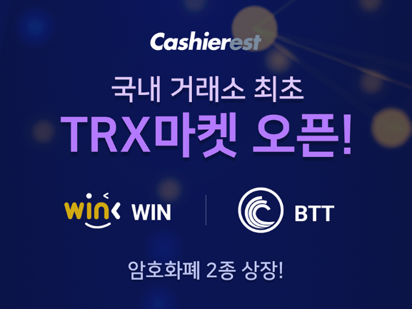 국내 암호화폐 거래소 캐셔레스트(대표 박원준)가 트론(TRX)을 기축통화로 사용하는 TRX 마켓을 오픈하고 비트토렌트(BTT), 윙크(WIN) 등 2종의 암호화폐를 상장한다고 28일 밝혔다. 또한 테더(USDT) 마켓에 TRX를 상장한다.