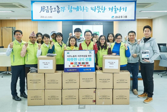 JB금융지주은 지난 21일 전북은행 수원외국인금융센터에서 외국인 근로자 300여명에게 발열내의를 전달하는 행사를 가졌다.