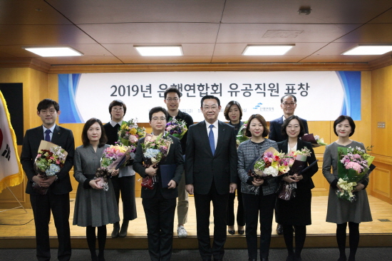 은행연합회는 27일 은행연합회 14층 세미나실에서 2019년 한 해 동안 은행연합회와 함께한 공동 TF 등을 통해 은행산업 발전에 기여한 은행 직원 71명에게 표창을 수여했다.