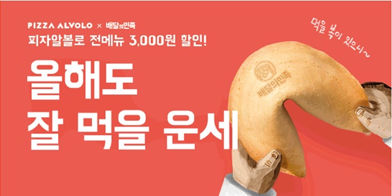 피자알볼로는 1월 매주 금요일마다 배달의민족에서 피자알볼로 메뉴를 주문하는 고객들에게 3000원 할인 쿠폰을 지급한다.