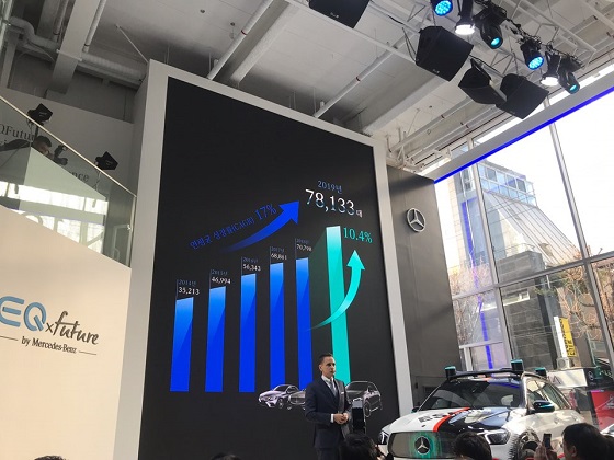벤츠 코리아는 지난 5년간 연평균 17%에 달하는 고속 성장을 거치며 현재 독주 체제를 굳히고 있다. 한국은 전 세계 벤츠 승용차 판매량 5위 국가에 해당한다. 지난해에는 전년 대비 10.4% 증가한 7만8133대를 판매해 국산차를 위협하는 수준까지 이르렀다.