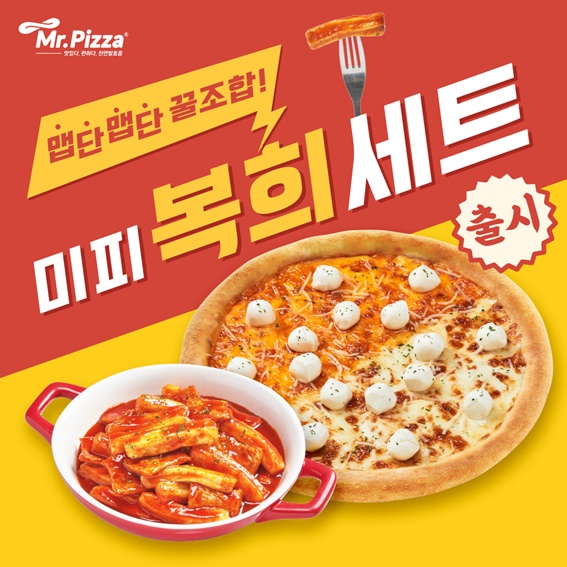 미피떡볶이는 지난해 미스터피자 피자뷔페 핫 디쉬 중 가장 사랑받았던 메뉴다. 인기에 힘입어 단품으로 출시됐다. 정식 메뉴로 출시된 만큼 재료와 양념이 한층 업그레이드됐다. 떡은 쫄깃한 식감에 양념이 잘 배는 츄로 떡을 사용했고, 부산의 명물 고래사 어묵을 더해 완성도를 높였다. 깔끔한 매운 맛의 미피떡볶이와 새우, 오징어, 치즈를 넣어 더욱 풍미 깊은 ‘해물치즈떡볶이’ 2종이다.