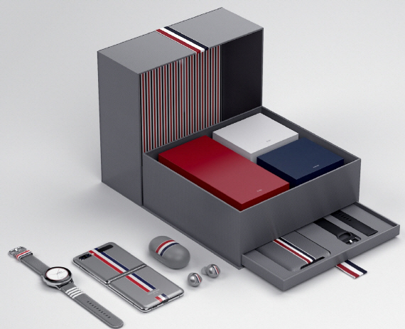 '갤럭시 Z 플립 톰브라운 에디션'은 톰브라운 신발 상자를 연상시키는 서랍장 타입 패키지에 포장된다. '갤럭시 워치 액티브2'와 '갤럭시 버즈+'가 함께 제공된다.