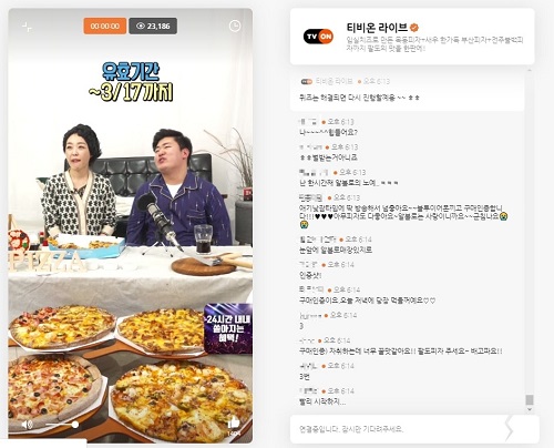 10일 오후 5시부터 6시까지 진행된 '티비온 라이브'에서는 팔도피자에 대한 설명과 피자 도우를 직접 만드는 모습을 보이며 소비자들의 눈길을 끌었다.