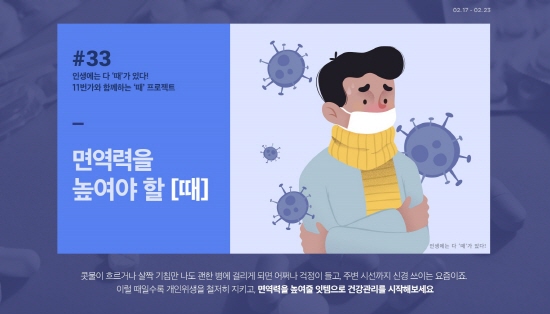 11번가는 17일부터 23일까지 '면역력을 높여야 할 때' 기획전을 열고 면역력 강화에 필수인 영양제(비타민, 오메가3, 프로폴리스, 유산균), 홍삼/인삼, 건강즙 등 약 350여 종 건강식품을 한데 모아 판매한다.