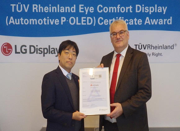 홀거 쿤즈 TUV 라인란드 제품인증 사업부문 회장은 “LG디스플레이의 P-OLED가 차량용 디스플레이로서 새로운 트렌드를 이끌어 갈 것으로 기대한다"라고 전했다.