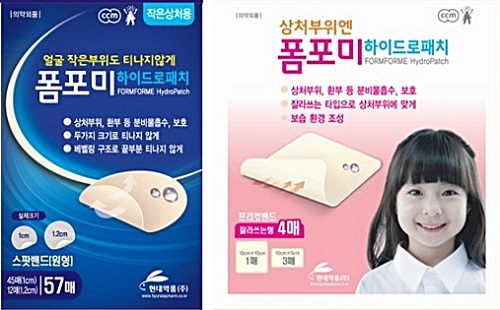 폼포미 하이드로패치는 하이드로콜로이드 성분으로 이뤄진 밴드로, 작은 부위에 붙일 수 있는 원형 타입의 스팟밴드와 상처부위의 크기에 맞게 이용할 수 있는 잘라쓰는 타입 총 2종으로 출시됐다.