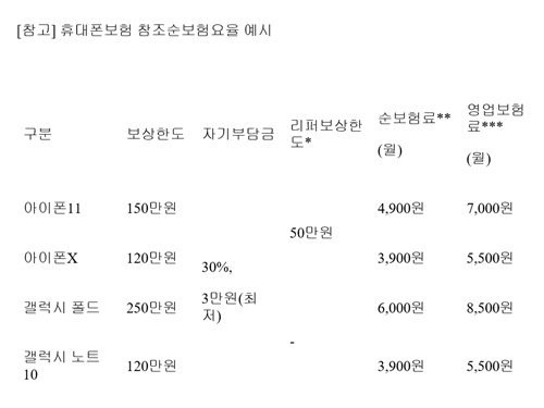 한편 휴대폰보험은 휴대폰의 도난 또는 분실, 파손 시 새로운 기기로 교체해주거나 수리비를 지급하는 보험을 말한다.