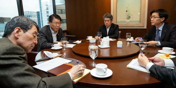 은 위원장을 비롯해 이동걸 산업은행 회장, 방문규 수출입은행장, 윤종원 기업은행장 등이 참석한 이번 간담회에서는 지난 7일 피해기업 지원을 위해 정책금융기관에서 마련한 2조원 규모의 신규자금 집행실적을 점검하고 차질 없는 이행방안을 논의했다.