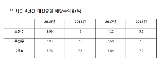 대신증권은 오랜 기간 주주중심 경영을 해오고 있는 기업이다. 업계 최고 수준 배당과 지속적인 자사주 매입을 통해 주주가치 제고에 힘쓰고 있다. 대신증권에는 전통적으로 오래된 주주가 많다. 배당 목적으로 장기투자를 하는 주주들이다. 대신증권은 21년 연속 현금배당을 하고 있다. IMF 이후 실시한 현금 배당금 규모만 1조원이 넘는다. 업계에선 세 번째로 많은 규모로 배당성향만 보면 타 대형사를 능가한다. 배당수익률도 우수하다. 보통주는 5.1%, 우선주는 7.3%로 은행예금금리를 대폭 상회한다.