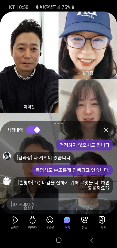 실제 KT 직원들의 경우 자체 화상회의 시스템과 함께 나를 서비스를 적극 활용하고 있다. 나를의 경우 스마트폰만 있으면 다자 영상통화가 가능하고 채팅, 문서파일·사진 전송 기능을 통해 화상회의를 무리 없이 진행할 수 있다.