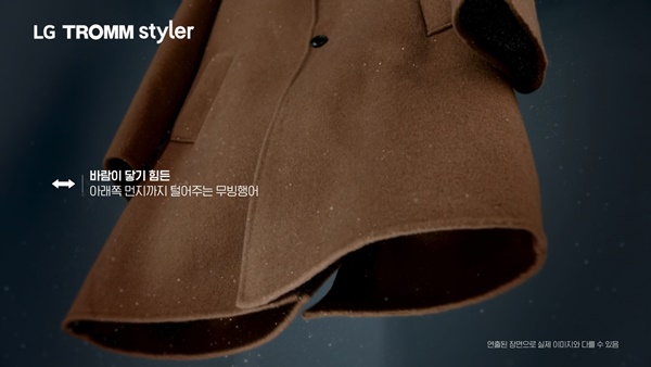고객들은 다른 방법으로는 제대로 털 수 없는 코트 아래쪽 먼지까지 스타일러가 확실히 털어주는 모습을 영상으로 확인할 수 있다. 스타일러는 누구도 흉내낼 수 없는 특허기술인 무빙행어(Moving Hanger)의 강력한 힘으로 1분에 최대 200회 옷을 흔들며 털어줘 옷 전체의 미세먼지를 골고루 제거하고 생활 구김을 줄여준다.