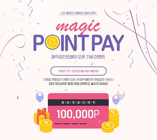 SK매직은 매직 포인트 페이 서비스 오픈을 기념하고, 이를 알리기 위한 후기 이벤트를 오는 31일까지 진행한다. 이벤트는 누구나 응모 가능하며, 매직 포인트 페이 서비스에 대해 궁금하거나 기대되는 점, 불편 사항 등을 이벤트 페이지에 댓글 형태로 작성하면 된다. 추첨을 통해 베스트 댓글로 선정된 10명에게는 10만포인트를 제공하며, 우수 댓글로 선정된 30명에게도 3만포인트를 지급한다.