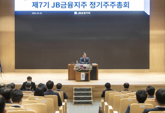 JB금융지주는 26일 본점 3층 대강당에서 제7회 정기 주주총회를 개최했다.