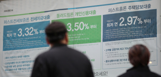 기업대출 금리는 3.19%에서 3.08%로 0.11%포인트 하락했다. 대기업 대출 금리가 2.96%로 떨어저 역대 가장 낮은 수준을 기록했고, 중소기업 대출금리도 0.13%포인트 하락한 3.35%로 사상 최저치를 나타냈다.