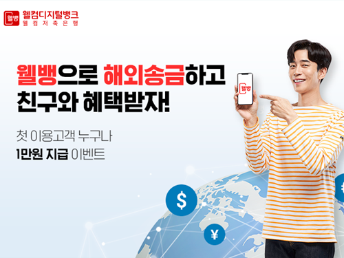 이번 이벤트는 자사의 모바일 뱅킹 플랫폼 웰컴디지털뱅크(웰뱅)에서 해외송금서비스를 이용한 고객이 친구에게 이를 추천하면 된다. 이후 친구가 해외송금 서비스를 이용하면 1만원을 지급한다.