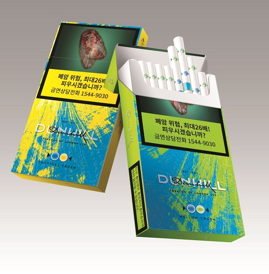 전면 중앙에는 오랜 역사를 자랑하는 던힐 브랜드의 출범 년도 'EST·1907'를 새겼으며, 각기 두 가지의 캡슐 이미지를 추가해 다양한 맛을 느낄 수 있는 더블 캡슐 제품임을 강조했다.