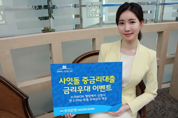 우리은행은 오는 19일까지 사잇돌 중금리대출 금리 1.0%p 우대 이벤트를 실시한다고 6일 밝혔다.