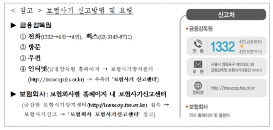 금감원 관계자는 "보험사기를 제안 받거나 보험사기 의심사례를 알게 된 경우 금융감독원에 적극적으로 제보해 주시기를 부탁드린다"고 당부했다.