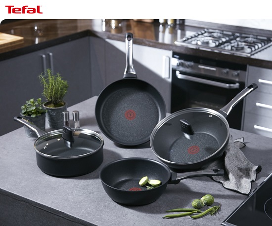 테팔 IH 티타늄 프리미엄 6P 세트는 기존 △22cm 깊은팬 △28cm 프라이팬 △28cm 볶음팬 △24cm 전골냄비(유리뚜껑 포함) 구성에 프라이팬과 볶음팬에 사용할 수 있는 28cm 유리뚜껑이 추가됐다. 여기에 고급스러운 블랙 펄 컬러의 바디와 세척이 편리해진 손잡이 연결 부위, 프리미엄 스테인리스 스틸 손잡이가 모든 제품에 새롭게 적용됐다.
