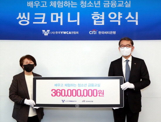 한국씨티은행은 한국YWCA연합회 와 4월 14일 오전 서울 한국씨티은행 본점에서 '배우고 체험하는 씽크머니 금융교실'의 협약식을 개최하고, 씨티재단 후원금 약 3억6000여만원(미화 30만 달러)을 전달했다.