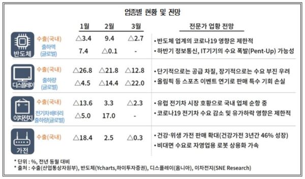 특히 반도체·디스플레이 분야의 경우 코로나19 사태가 빠르게 종식된다면 그동안 억눌렸던 수요가 하반기에 폭발적으로 증가할 것이라는 전망이 나왔다.