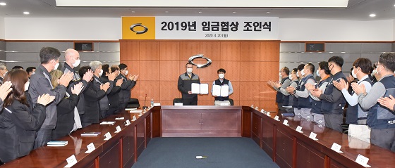 이날 조인식에 참석한 도미닉 시뇨라 사장과 박종규 노동조합 위원장은 7개월이 넘는 장기간 교섭으로 노사 모두 아픔을 겪었다는 것에 공감하고 향후 진행될 2020년 임금 및 단체협약 교섭은 원만하고 조속히 마무리될 수 있도록 노력하자는데 뜻을 같이 했다.