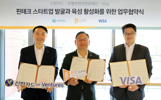 신한카드는 혁신금융 성장전략의 일환으로 비자코리아 및 디캠프(은행권청년창업재단)와 함께 공동으로 핀테크 스타트업을 육성하기 위해 3자간 업무협약을 체결했다고 22일 밝혔다.