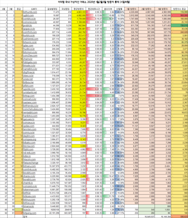4대 거래소 중 한 곳으로 꼽히는 코빗은 25만3413명을 기록하며 8위에 머물렀다.