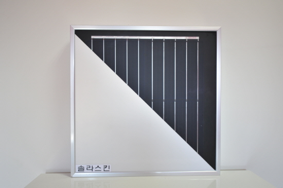 솔라스킨은 유색나노필름(적외선투과 필름)을 사용해 건축물 외장재로 활용이 가능한 '건물 일체형 태양광(이하 BIPV: Building Integrated Photovoltaic) 모듈'이다. 태양광발전(PV:photovoltaics)모듈에 유색나노필름(적외선 투과 필름)을 라미네이팅해 전력 생산이 가능하다.