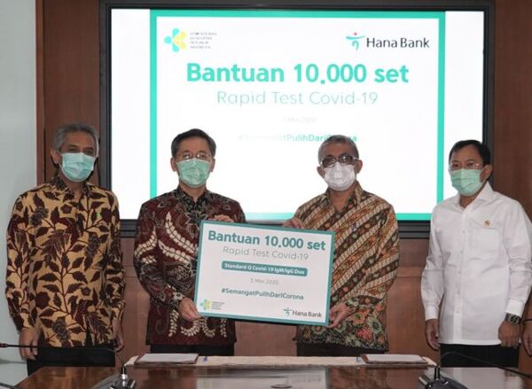 진단키트 기부행사에는 인도네시아 보건부 장관(트라완, Terawan Agus Putranto) 및 현지 보건당국 주요인사들이 참석하여 코로나19 진단키트를 전달받고 인도네시아 하나은행에 고마움을 전했다.