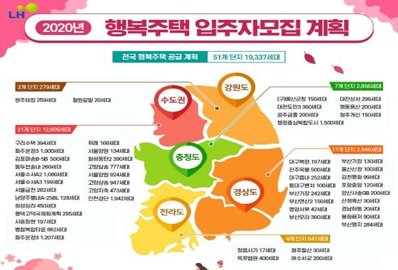 한국토지주택공사(LH, 사장 변창흠)는 전국 6개 단지 총 2670호에 대해 올해 첫 행복주택 입주자 모집을 시작한다고 7일 밝혔다.