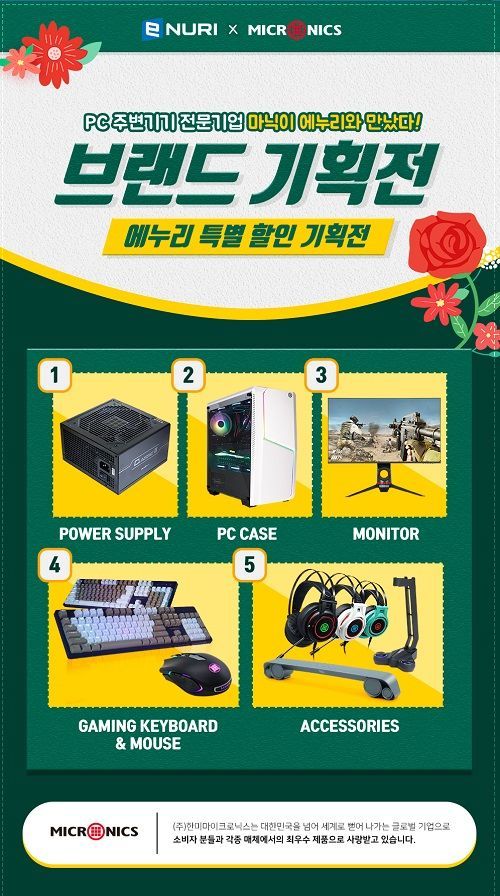 오는 12일까지 진행되는 기획전에선 마이크로닉스가 엄선한 제품 19종이 최대 35% 할인된 가격으로 판매된다.