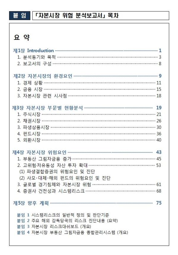 금융감독원이 '자본시장 위험 분석보고서'를 발간했다.