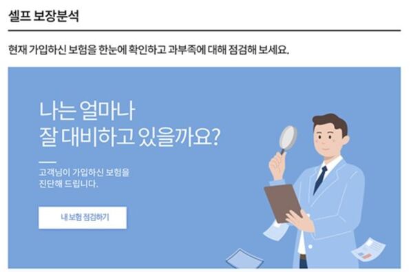 앞서 삼성화재가 작년 12월말 론칭한 '셀프 보장분석' 서비스도 소비자들에게 좋은 반응을 얻고 있다. 삼성화재에 따르면 해당 서비스는 출시 100일 만에(2월 기준) 약 1만6000명 가량이 이용했고 최근 일주일 간 하루 평균 800명 이상이 보장내역을 확인한 것으로 알려졌다.
