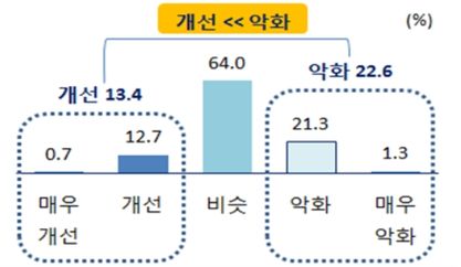한국경제연구원이 올해 2월 100인 이상 주한 외투기업 대상으로 한 조사에 따르면, 외투기업의 74%가 현 정부 출범 후 가장 부담되는 기업정책으로 근로시간 단축과 최저임금 인상을 꼽았다. 지난 5년간 경영여건이 ‘악화됐다’는 평가가 22.6%로 ‘개선됐다(13.4%)’는 응답에 비해 상대적으로 많았다.