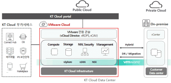 고객사는 KT 클라우드 기반 다양한 소프트웨어를 기존보다 더욱 손쉽게 접목해 소요시간 단축 등 효율성을 극대화할 수 있다. KT는 마켓플레이스에서 네트워크, 빅데이터, 개발도구, 보안도구 등 70여개 솔루션을 제공한다.