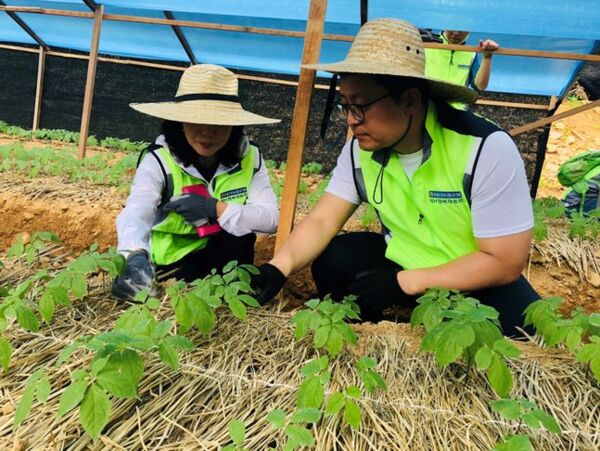 이날 농협은행은 모곡3리마을에 방송장비를 전달하고, 강원영업본부 임직원들과 함께 인삼밭 제초작업과 주변 환경정비 등 일손돕기에 구슬땀을 흘렸다.