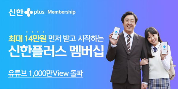 신한금융그룹은 지난 14일 유튜브와 SNS를 통해 공개한 '최대 14만원 먼저 받고 시작하는 신한플러스 멤버십' 광고가 On-Air 18일만에 1000만 조회를 돌파했다고 31일 밝혔다.
