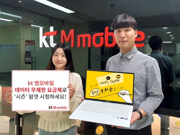 KT 엠모바일은 온라인동영상서비스(OTT) 시즌(Seezn)의 기본 이용권인 '시즌 플레인'을 평생 제공하는 데이터 무제한 요금제 '데이터 맘껏 ON 비디오 시즌'을 출시한다고 1일 밝혔다.